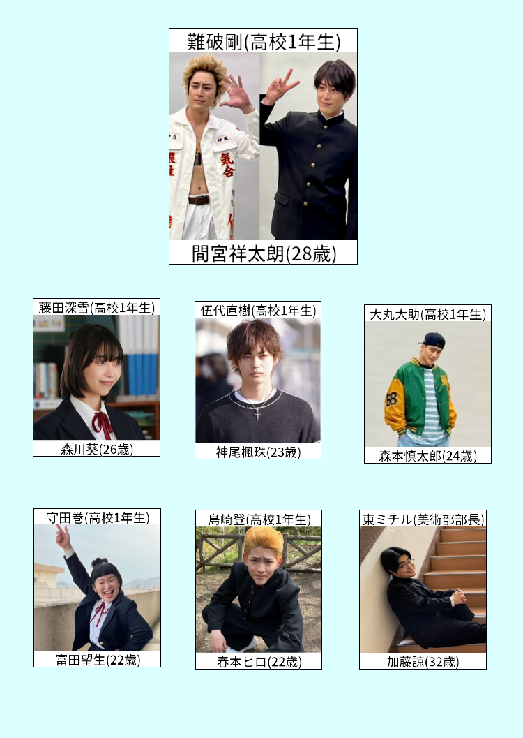10代にみえる俳優を揃えました!!が前提ではなく、間宮祥太郎を高校生役に使っちゃうんだ(笑)