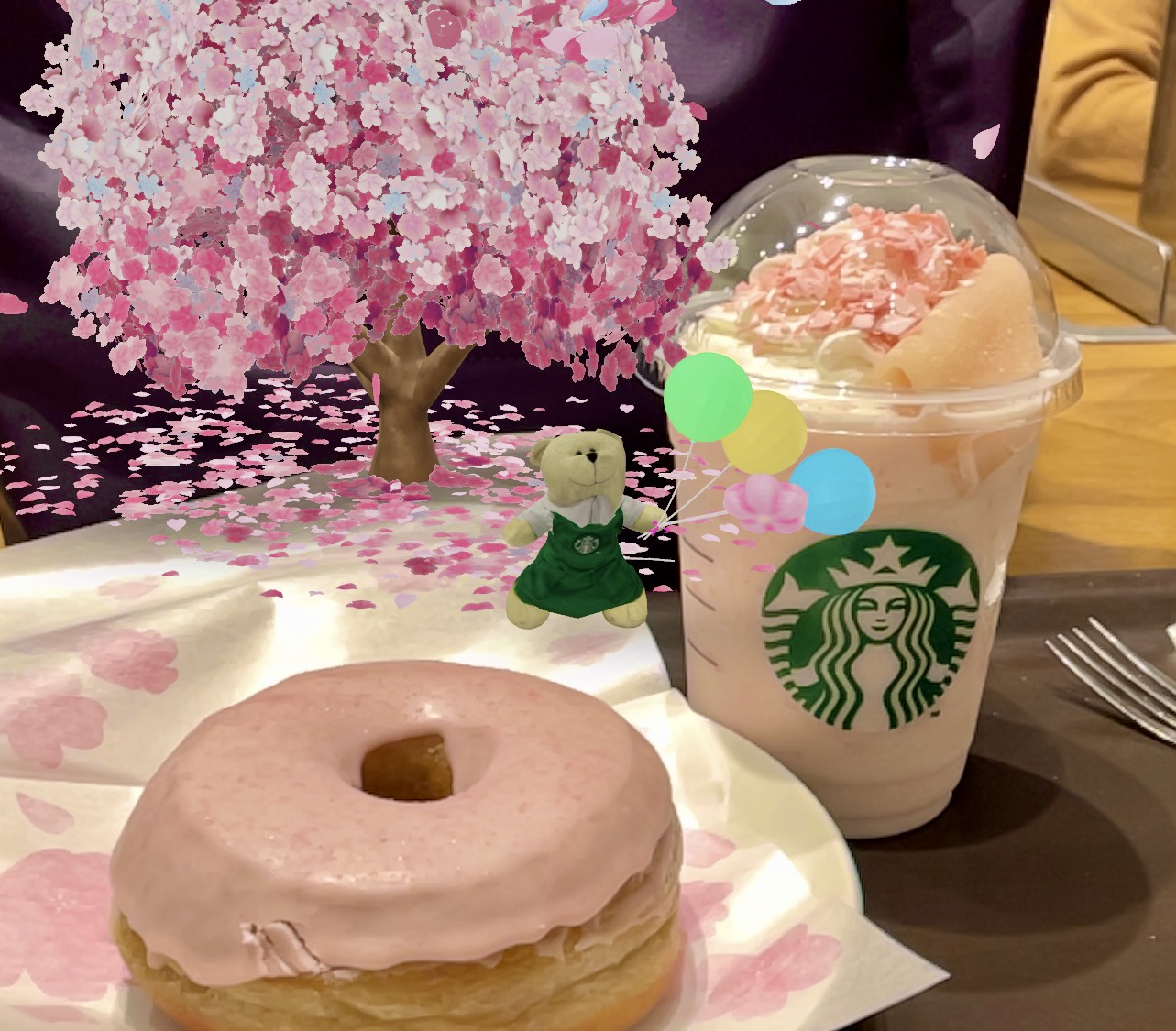 同日に発売される「さくらドーナツ」が、フラペチーノとの相性が抜群のようなので、軽食で頂くときはぜひ一緒に注文してみてください♪